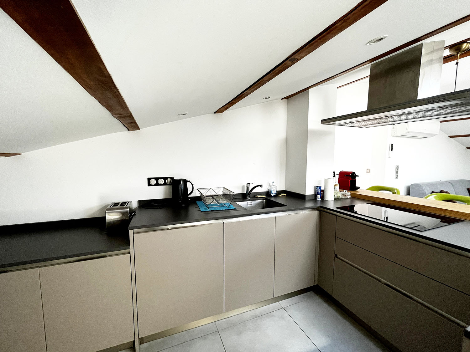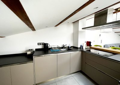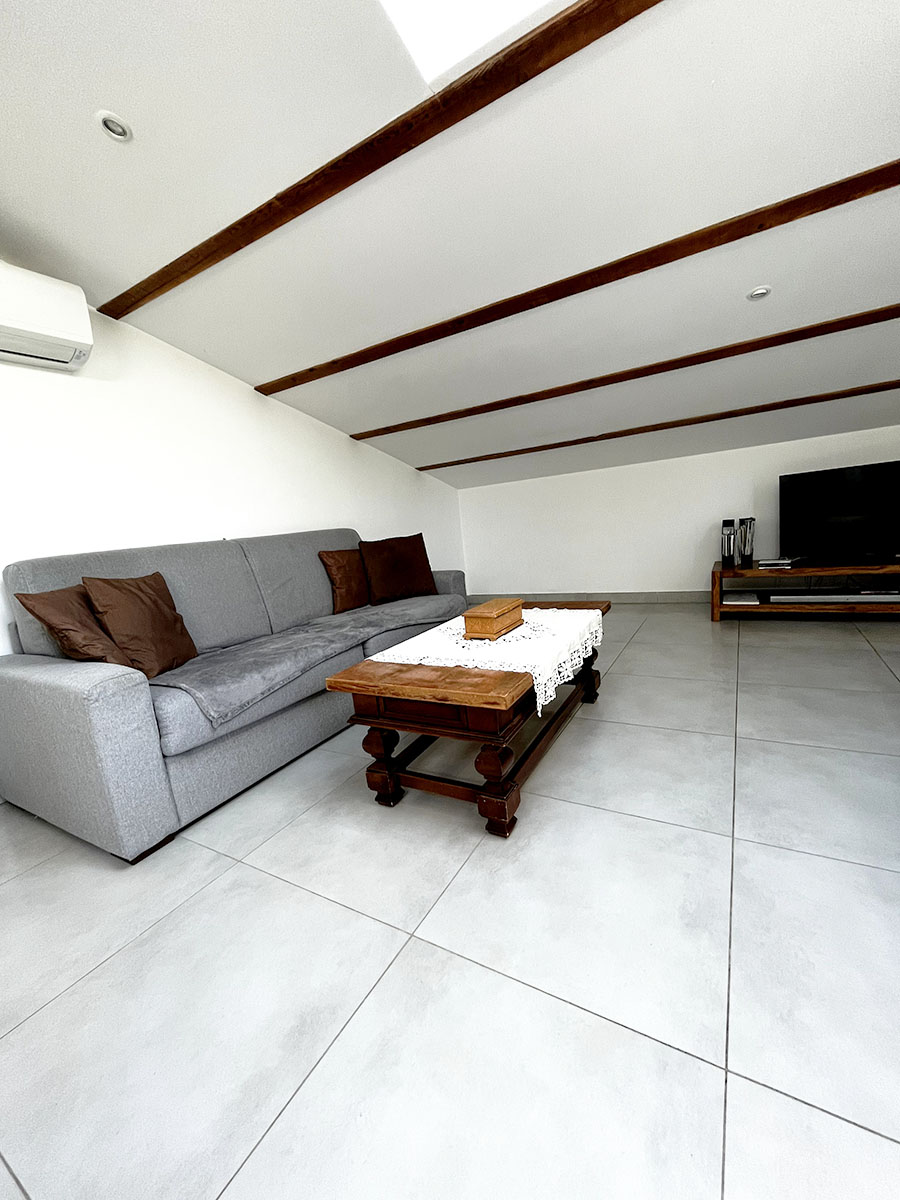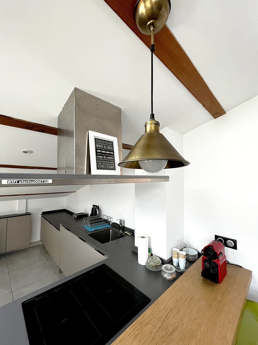 Profitez d’un espace convivial avec canapé et une TV grand écran plat. Côté cuisine, elle est entièrement équipée avec un réfrigérateur, un lave-vaisselle, une machine à café et tout le nécessaire pour votre séjour.